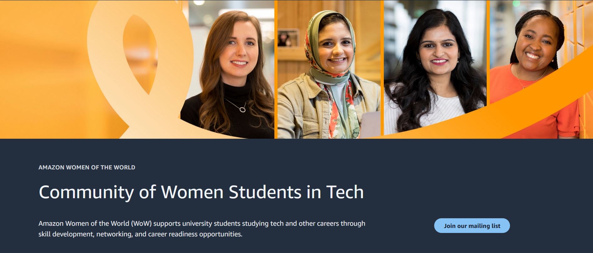Amazon Women of the World (WoW) supports university students studying tech and other careers through skill development, networking, and career readiness opportunities.